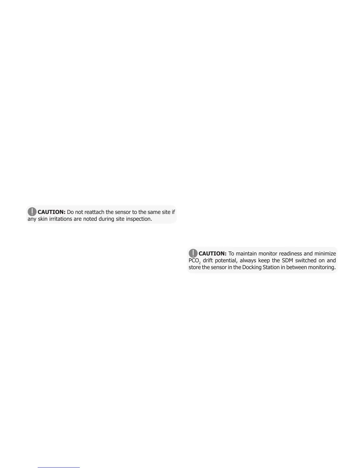 CAUTION: Do not reattach the sensor to the same site if