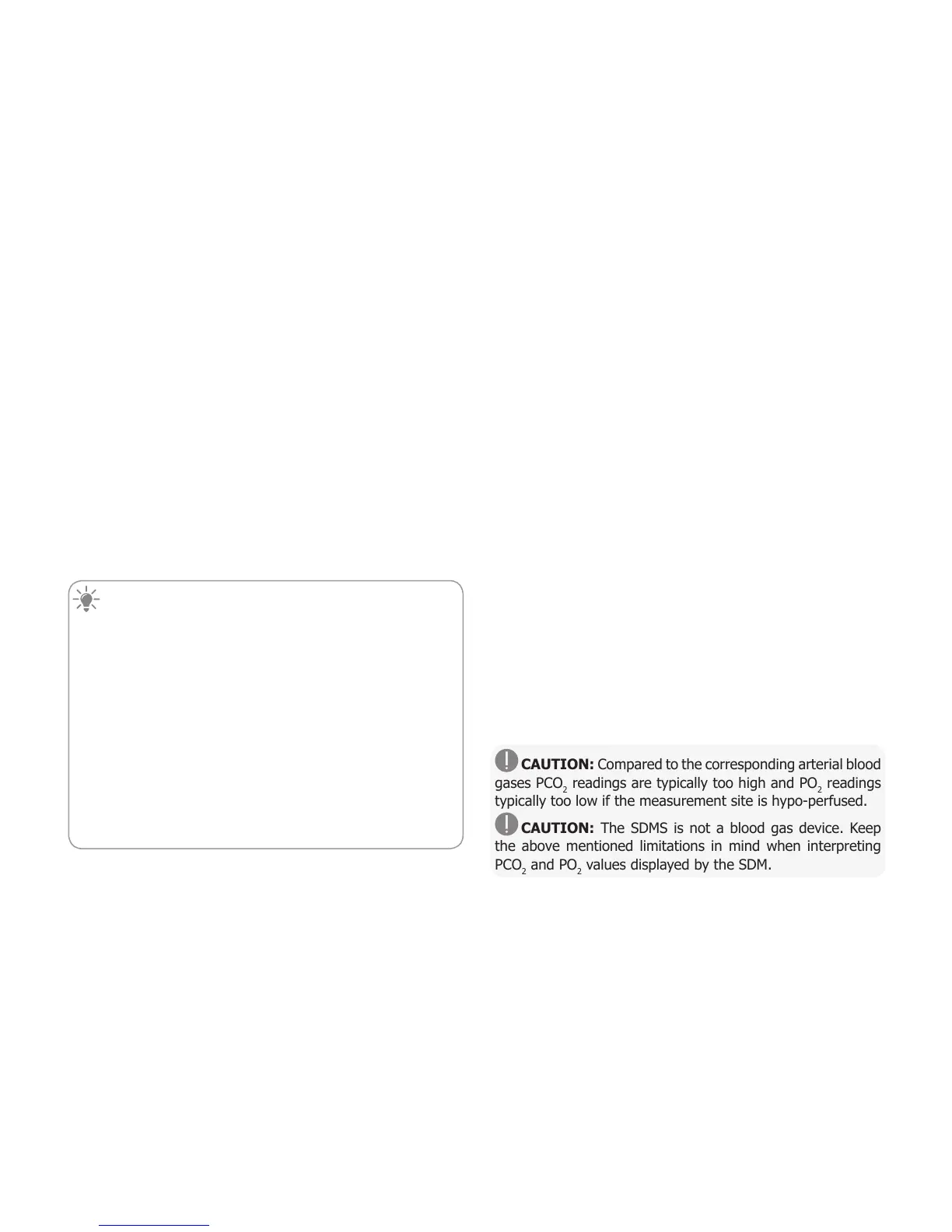 CAUTION: The SDMS is not a blood gas device. Keep