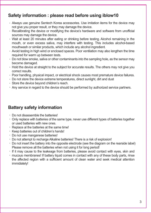 Do not blow smoke, saliva or other contaminants into the sampling hole, as the sensor may