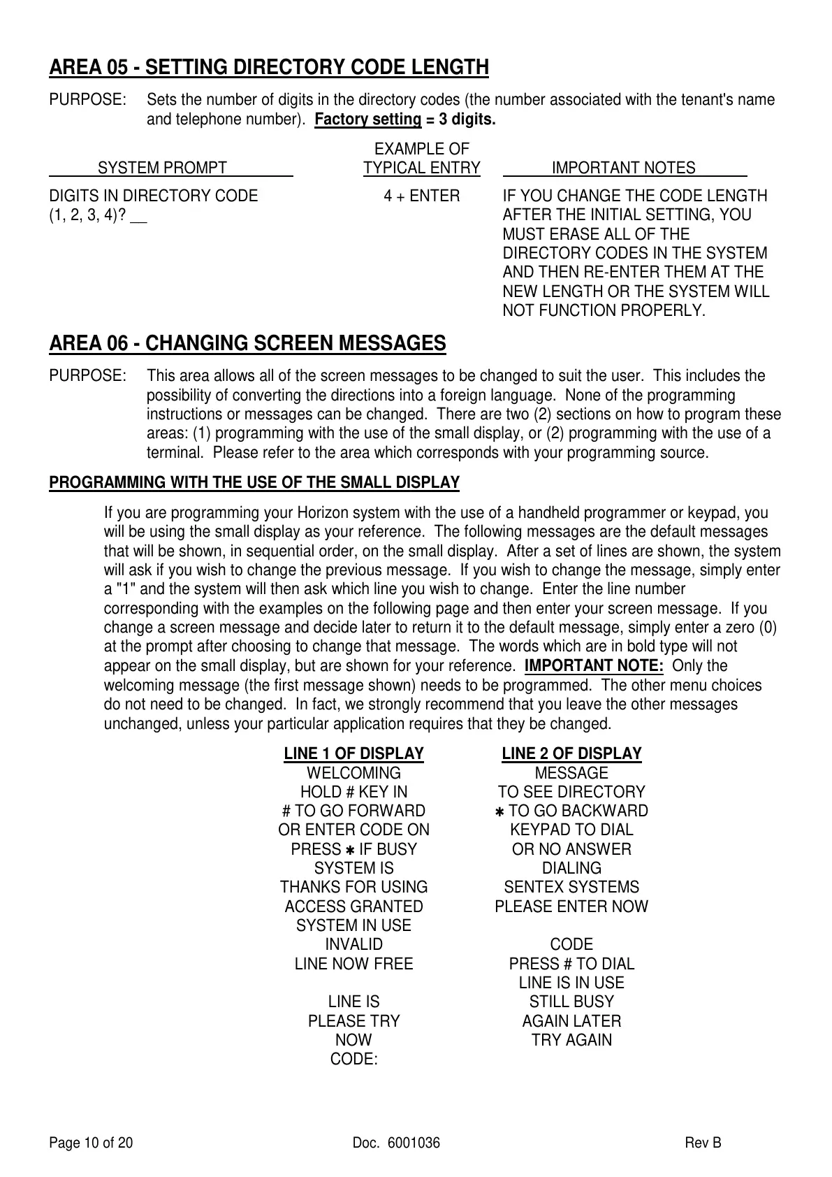AREA 05 - SETTING DIRECTORY CODE LENGTH