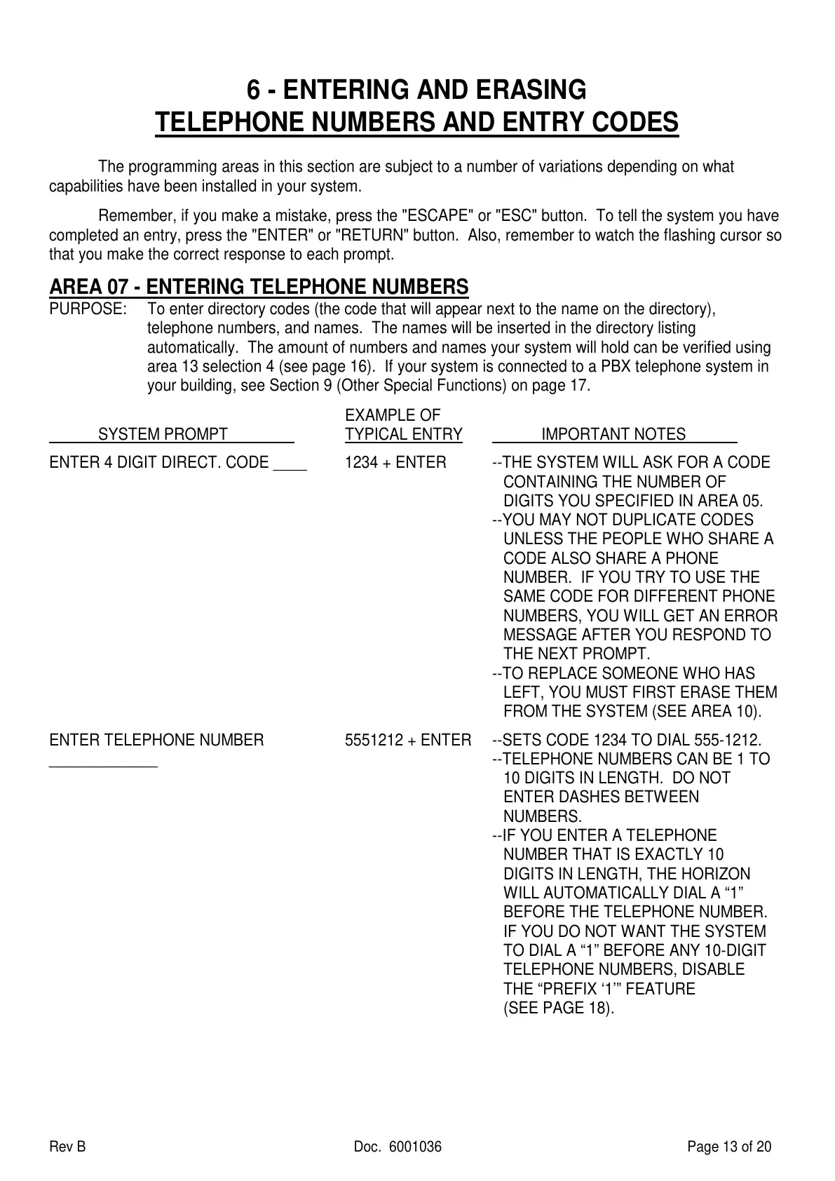 AREA 07 - ENTERING TELEPHONE NUMBERS