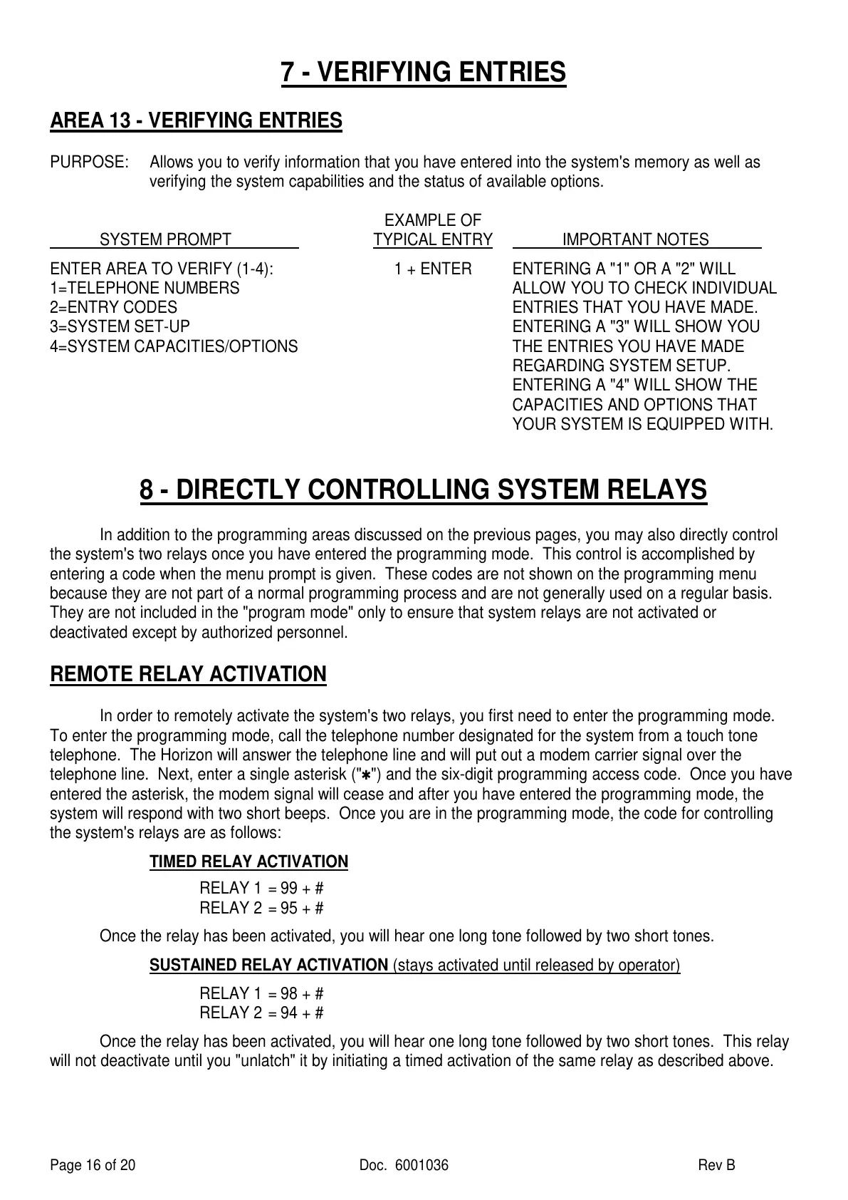 SUSTAINED RELAY ACTIVATION (stays activated until released by operator)