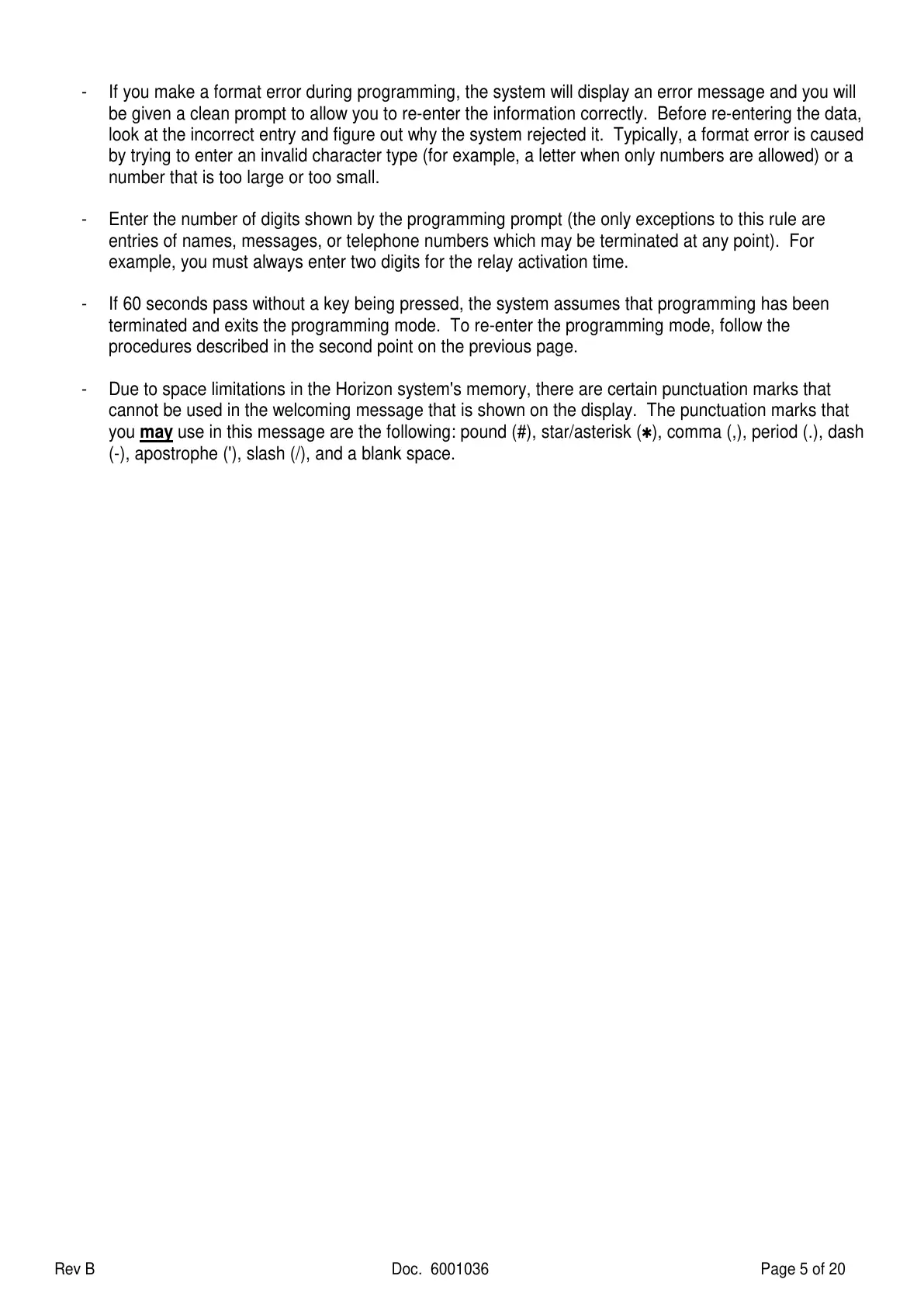 - Due to space limitations in the Horizon system's memory, there are certain punctuation marks that