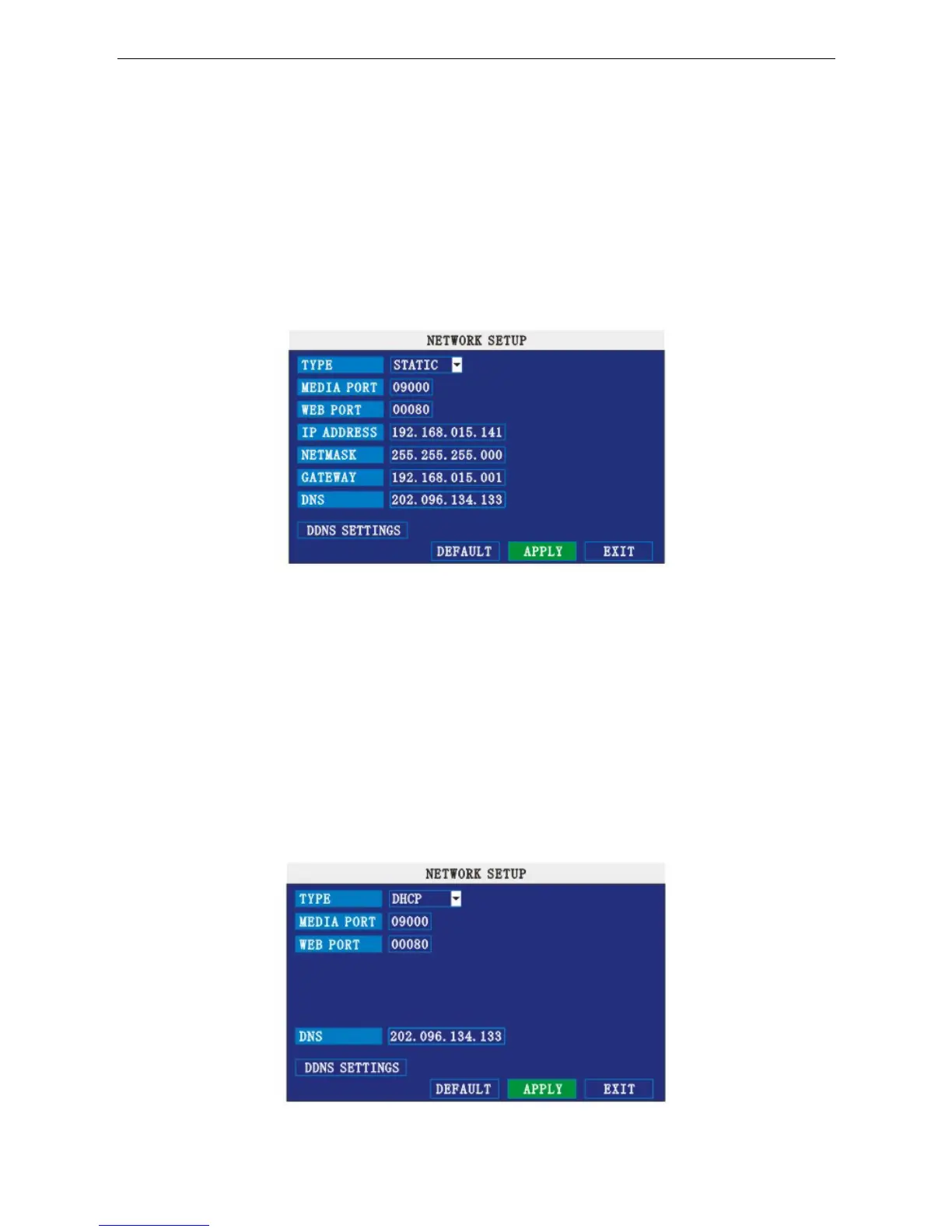 Select [Static] in the type, press [Enter] to access the interface as below: