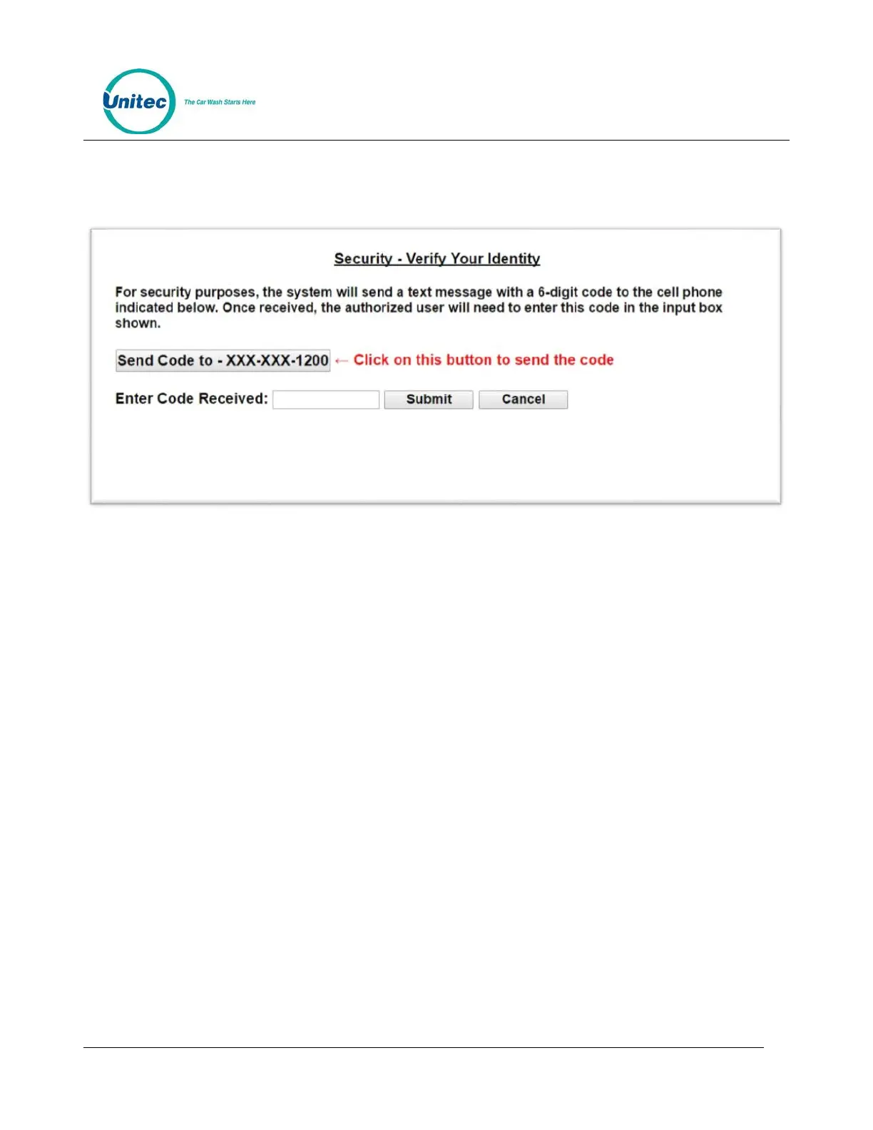 The next screen will be displayed. You must click the Send Code to… button to generate the security