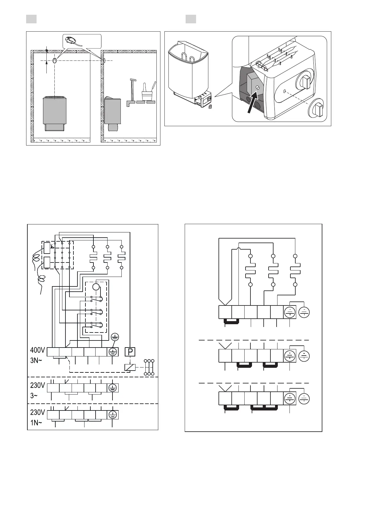 Figura 14. Collegamenti elettrici della stufa 1-E, 2-E