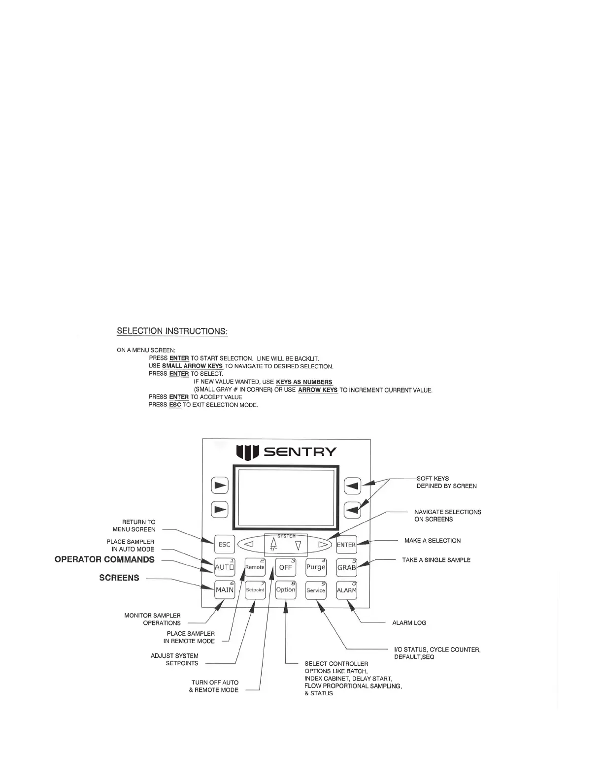 4. Purge: If sampler has a purge/air eject option, this key manually operates the solenoid to purge the unit.