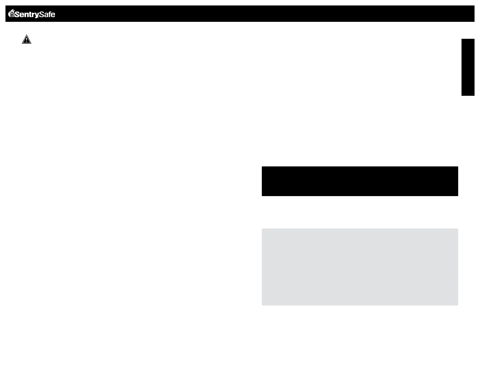 NOTE: SentrySafe will not be responsible for any damage or loss of items placed in the unit due