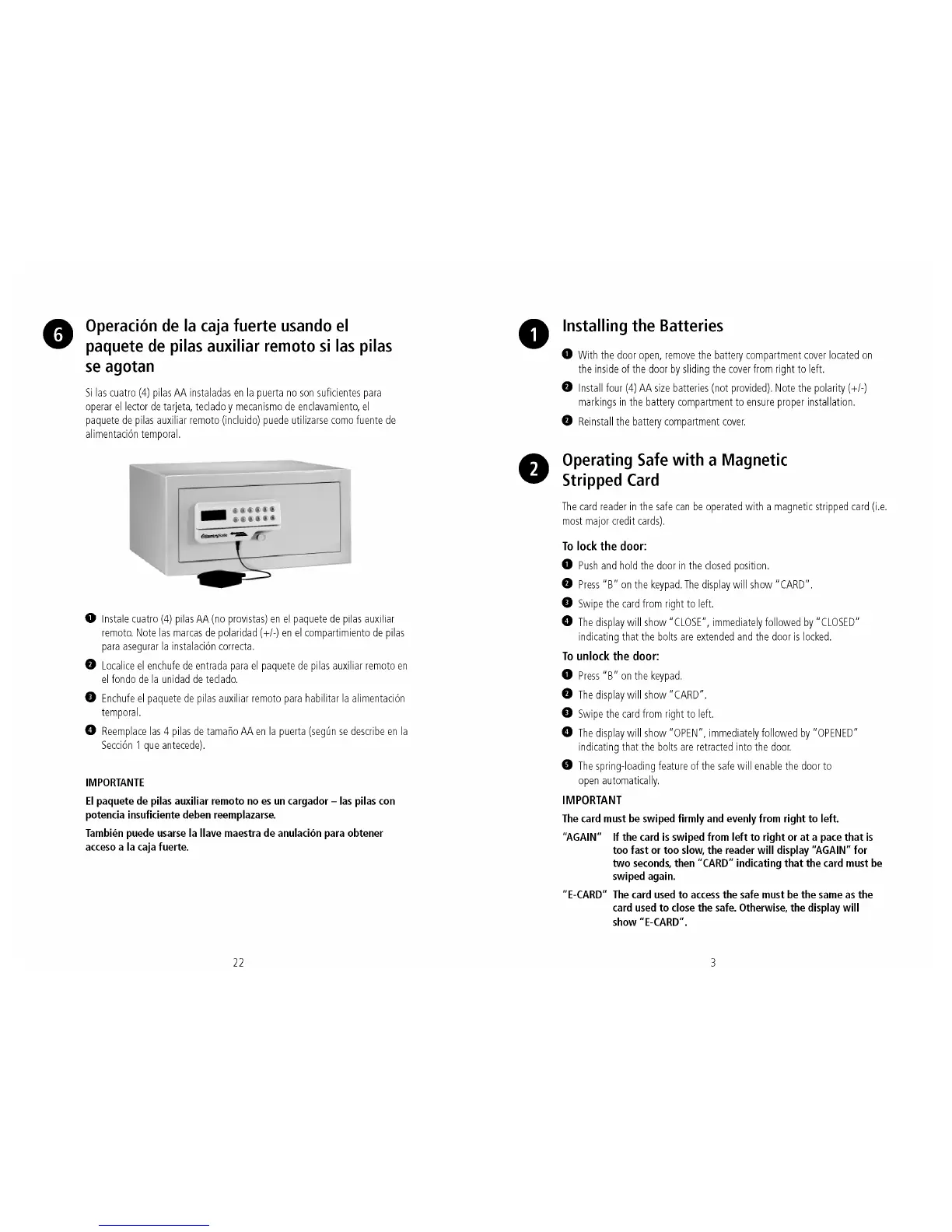 SentrySafe H060ES - Emergency Operation and Lock Reset; Using the Master Override Key for Access; Reprogramming Lock After Override Key Use