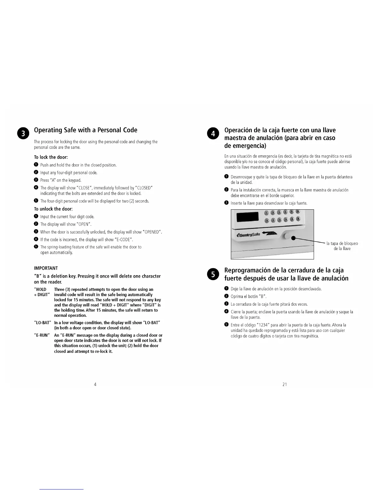 SentrySafe H060ES - Auxiliary Battery Pack for Power Failure; Connecting and Using the Remote Battery Pack