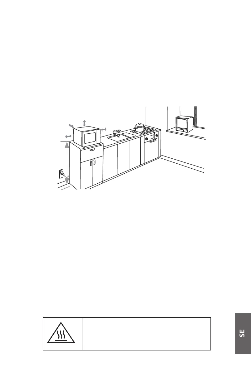ovanför apparaten och ett utrymme på minst 20 cm mellan apparaten och