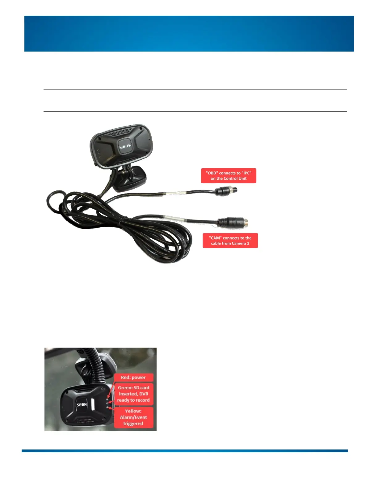 Connect OBD from Camera 1 to the IPC input on the Control Unit.