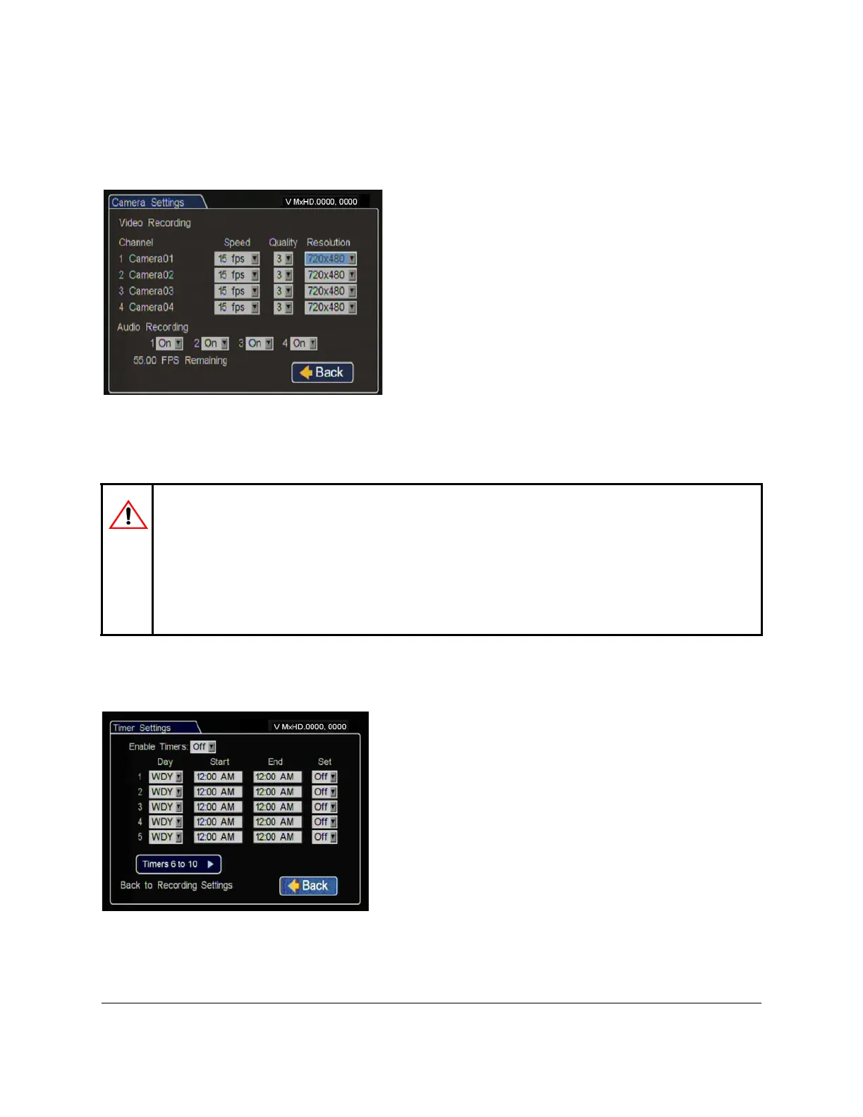 14 In the Recording Settings menu, click Timers only if you have a specific requirement for timers.