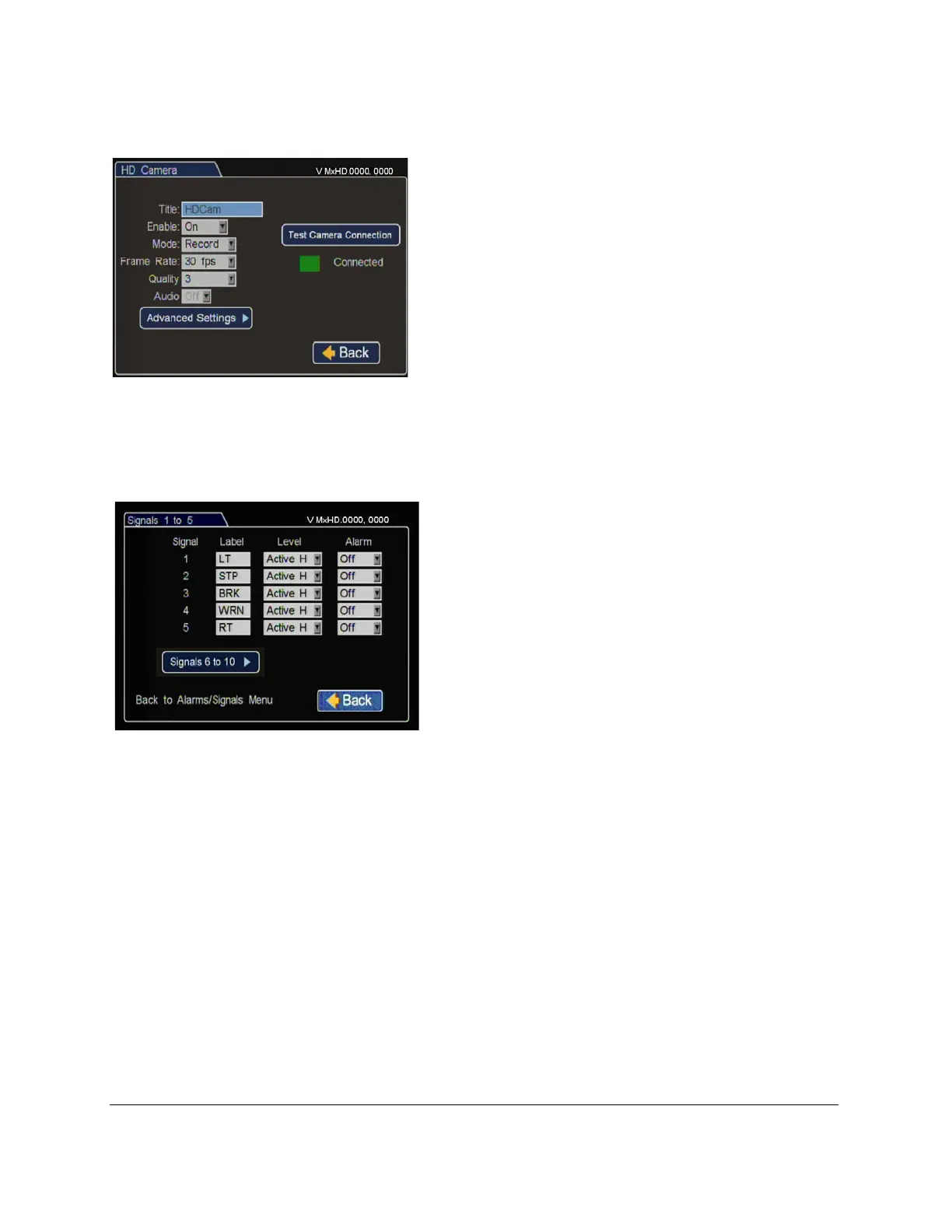 Signals 1 to 5 Menu