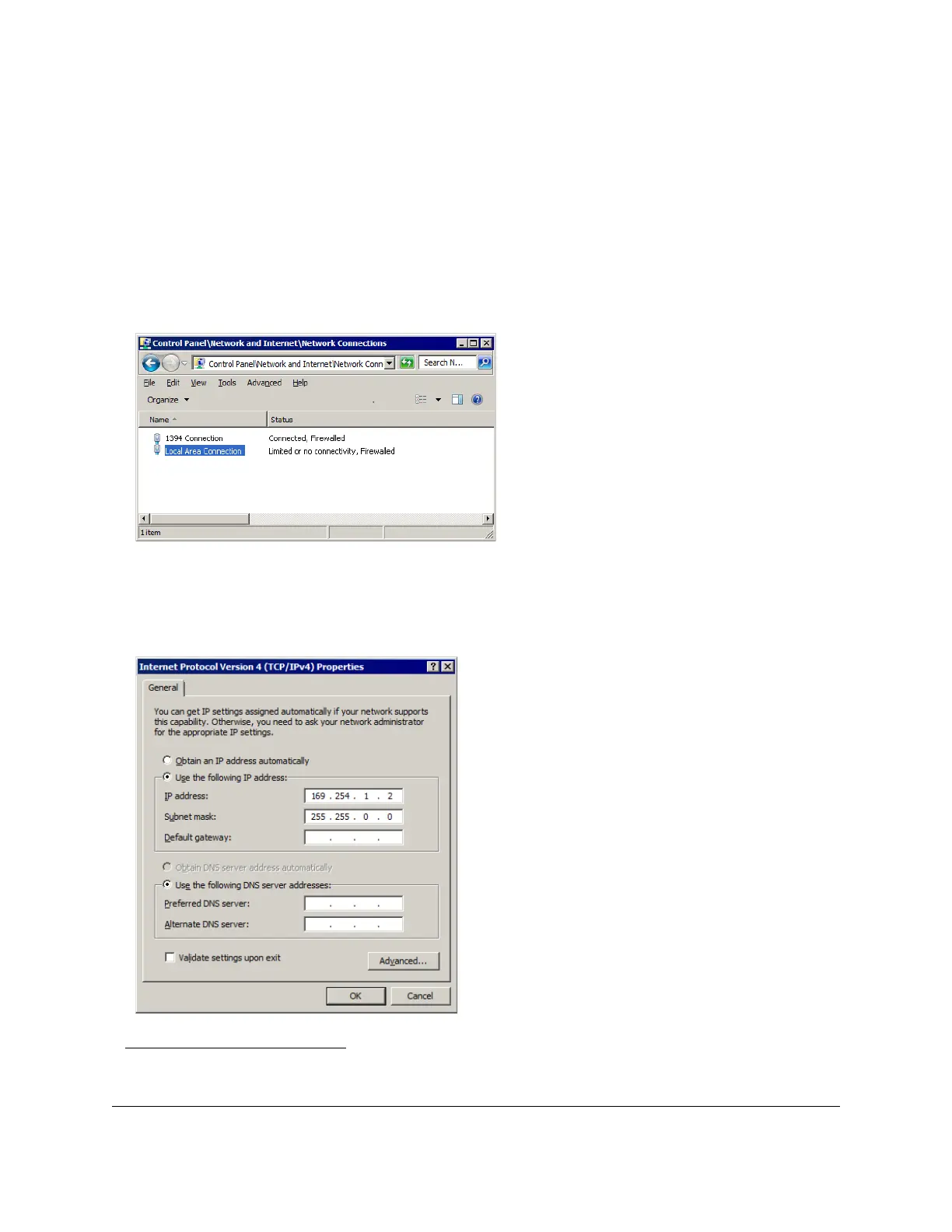 and cause a conflict. If this is the case, manually set the laptop IP address to http://169.254.1.2, as