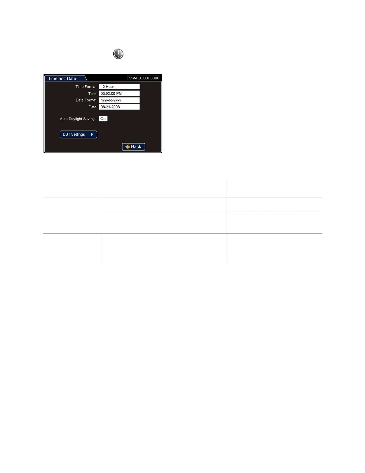 Use the Time and Date menu to set the time and date settings and Auto Daylight Savings settings.