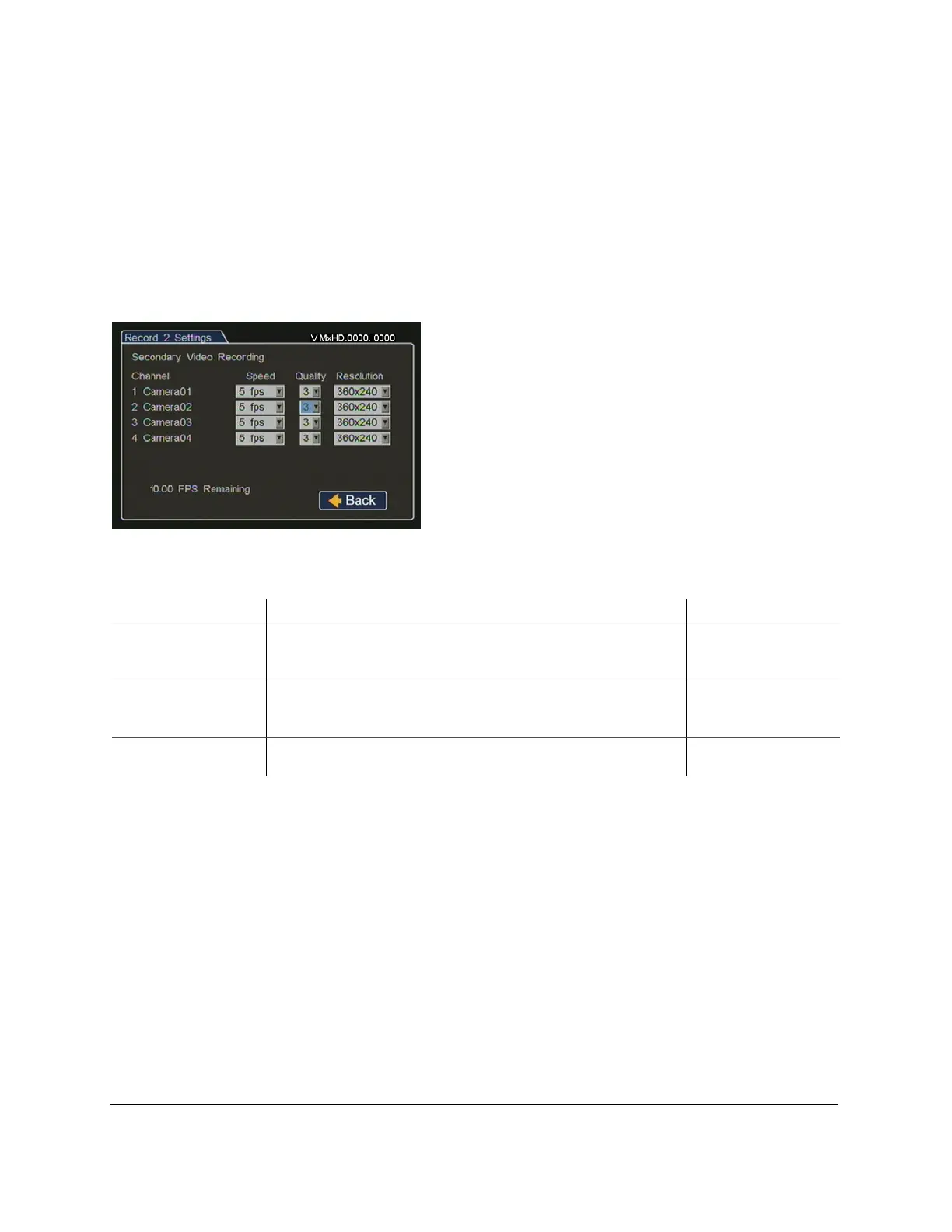 stream. Use the Record 2 Settings menus to set the FPS, picture quality, and recording resolution for up to