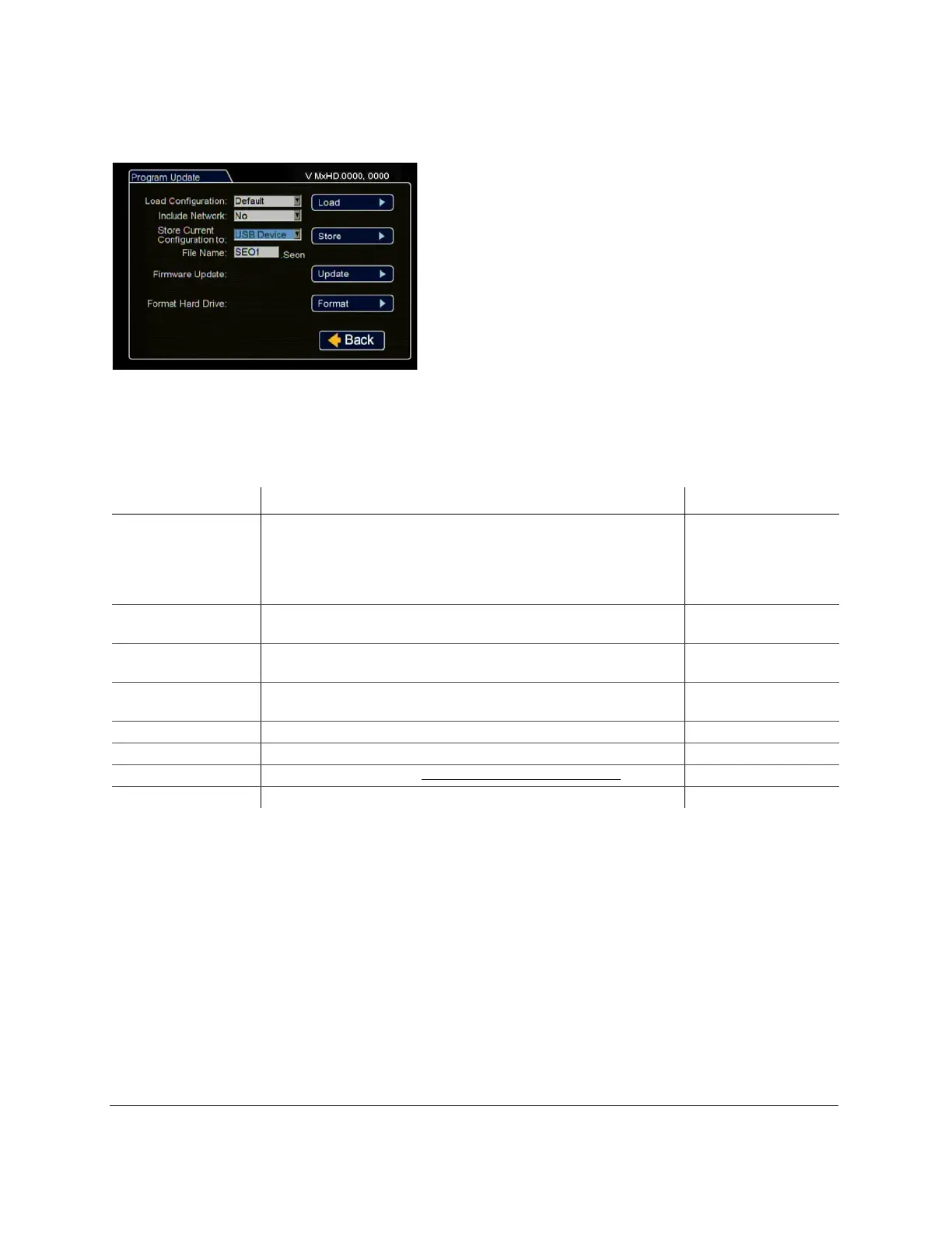 The Program Update menu enables users to update the internal firmware and to store and load the DVR