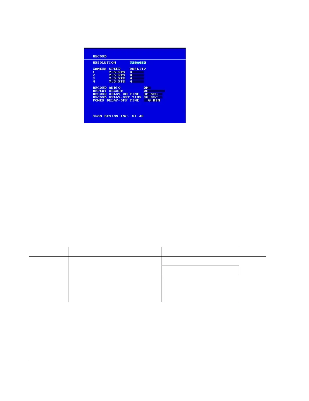 Quality, Record Audio, Repeat Record, Record Delay-On Time, Record