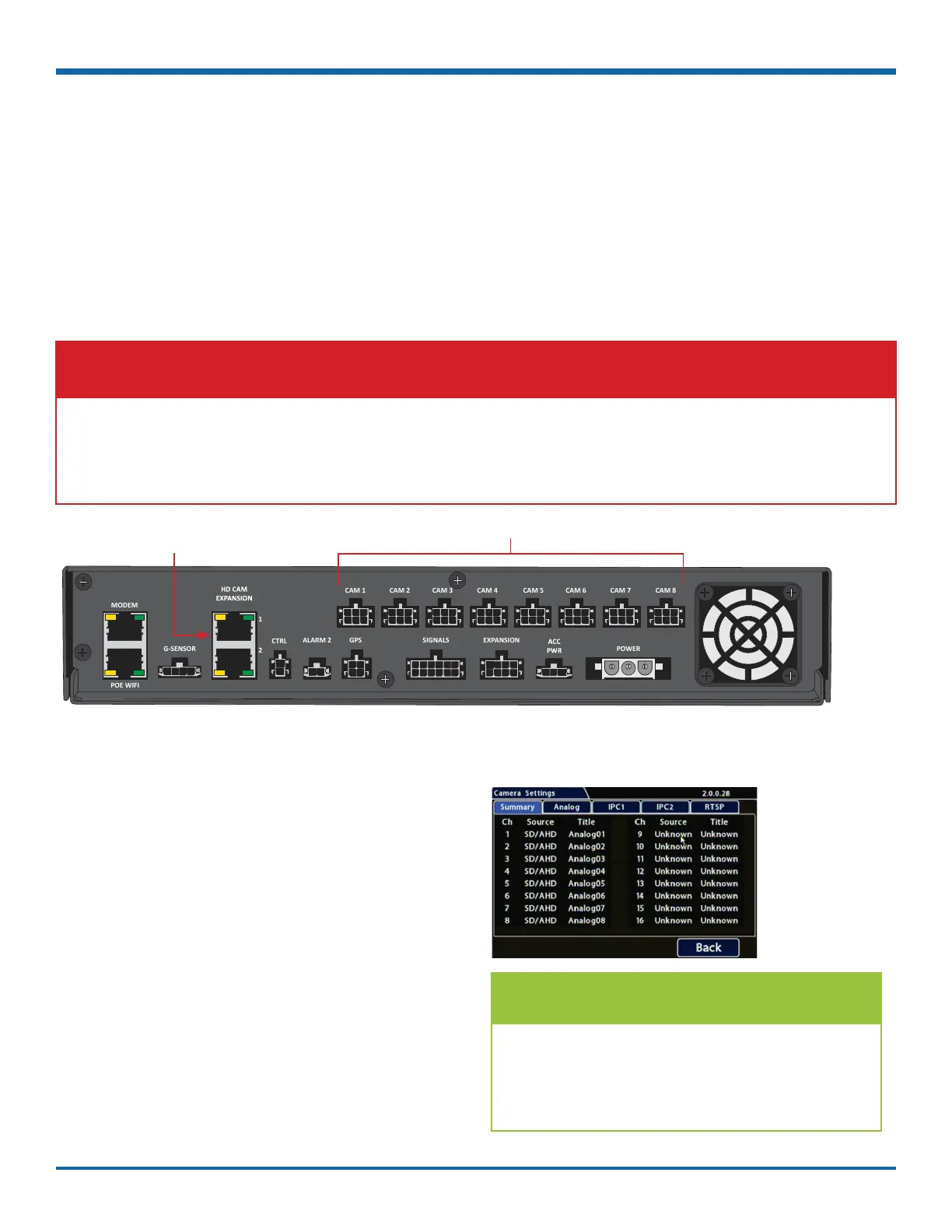 to an HD Cam Expansion port, the port must be set up before you can work with the camera recording