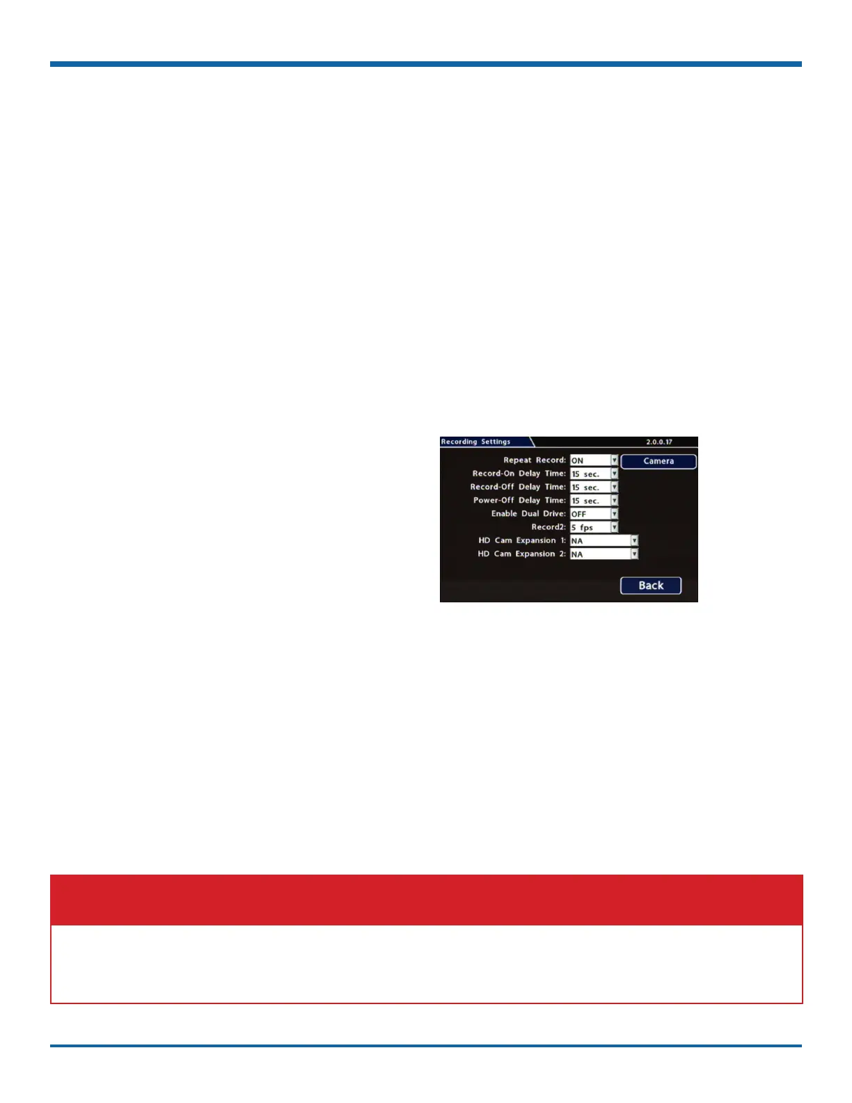 2. Set the record and power delay timers.