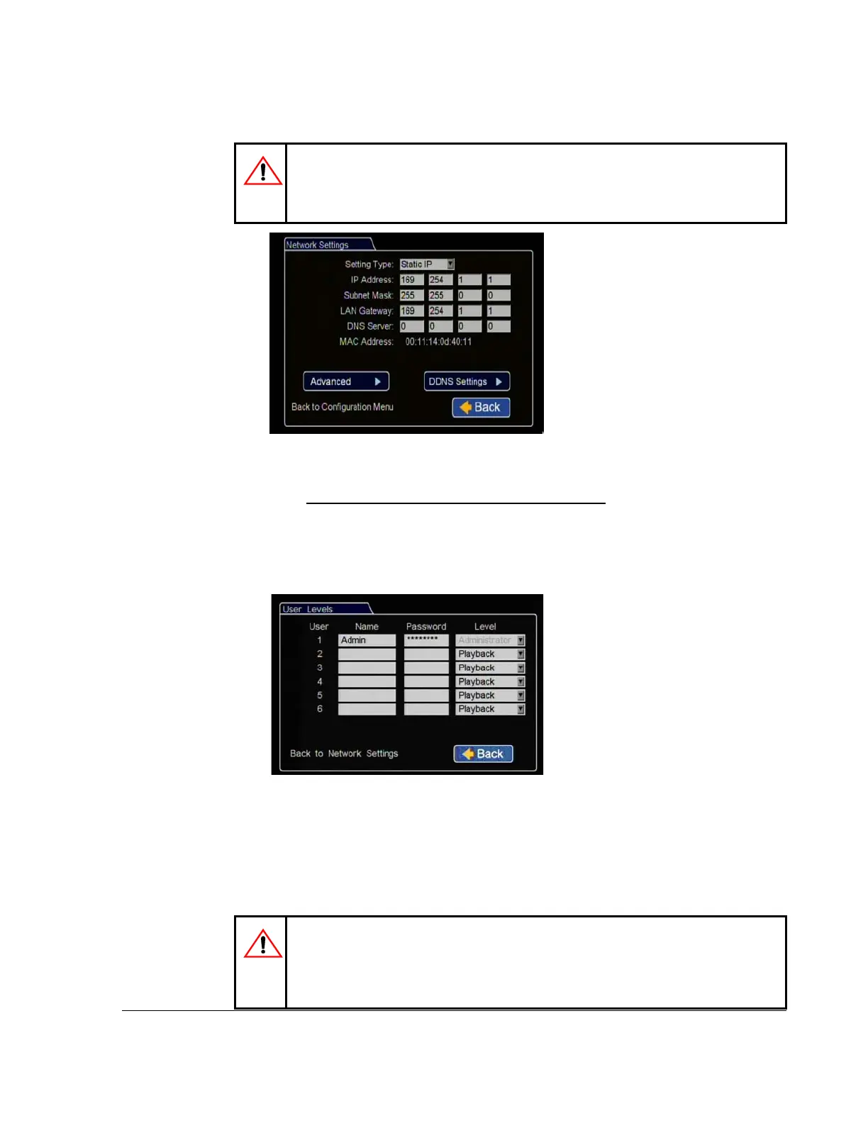 24. In the Network Settings menu, click Advanced, then User Levels to assign users