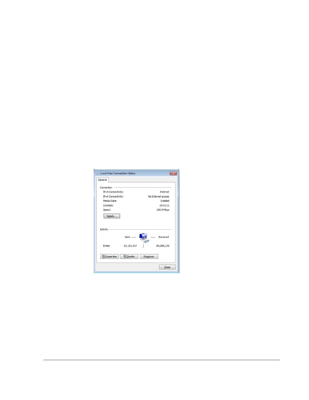 Local Area Connection Status window