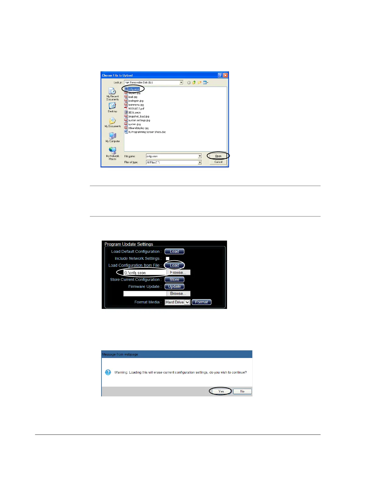 12. In the Message from web page dialog, click OK to start the configuration upload.
