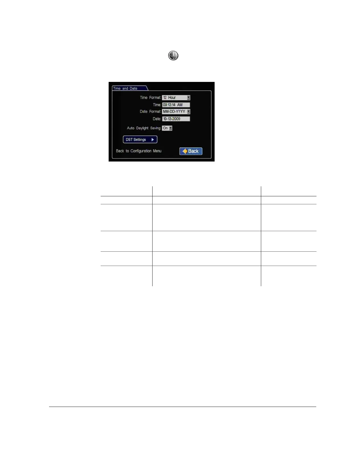 Use the Time and Date menu to set the time and date settings and Auto Daylight