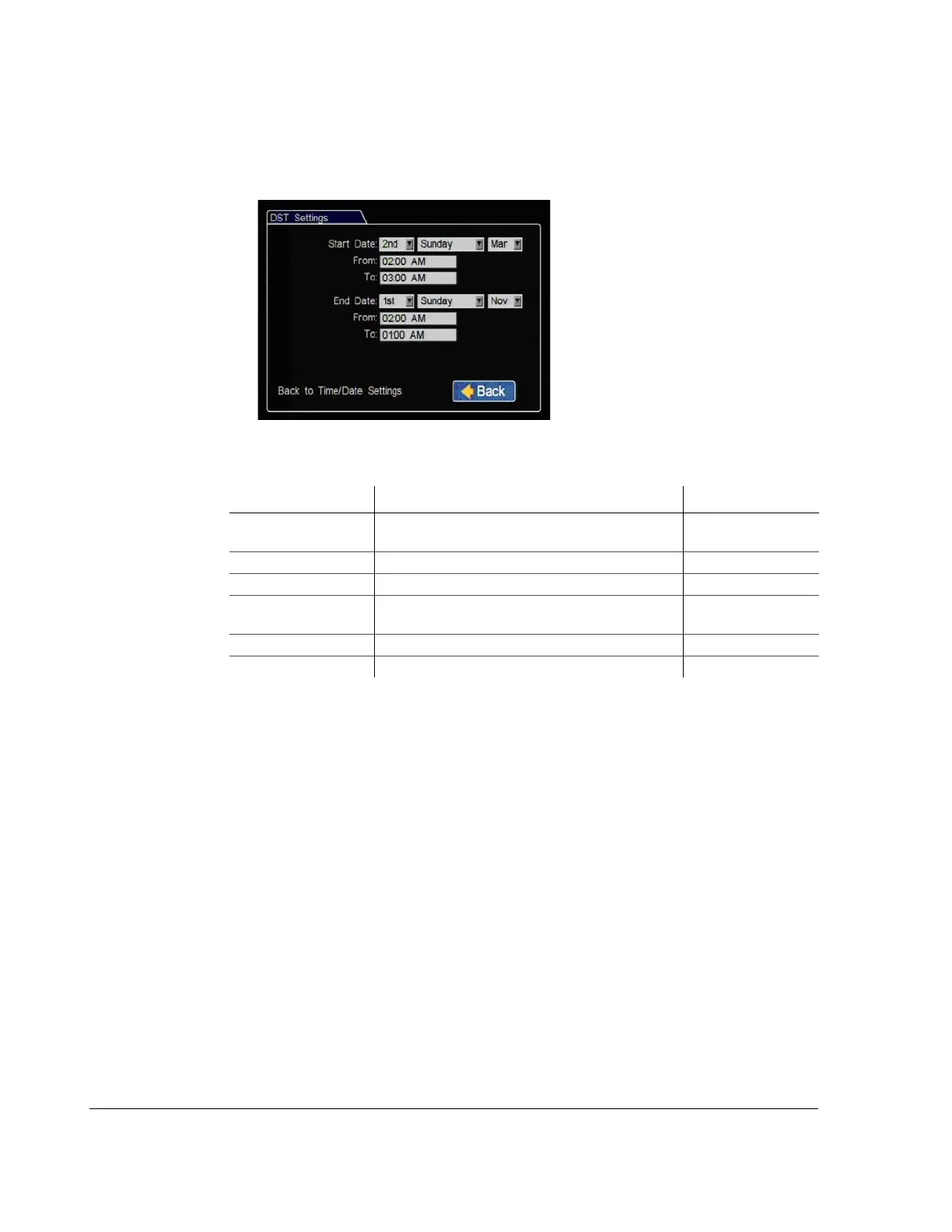 4.2.1. DST (Daylight Savings Time) Settings Menu