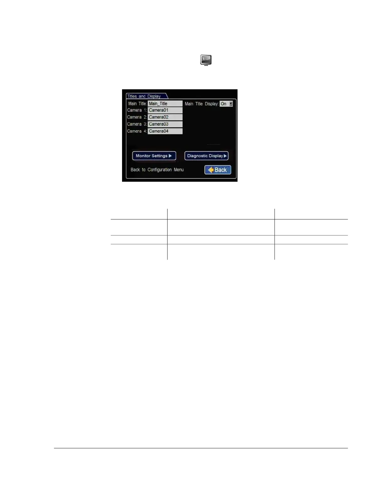 Main Title Display Show or hide the main title display. [On], Off