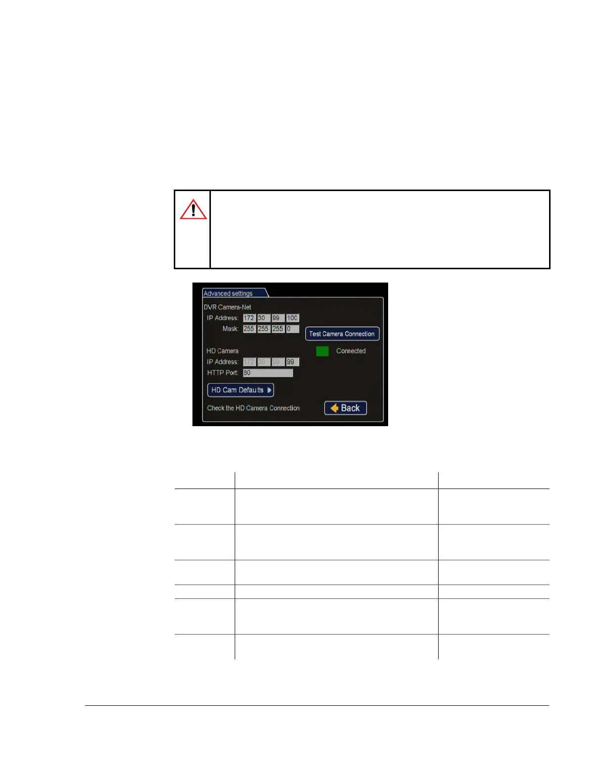 The Advanced Settings menu is used to change the HD camera‘s IP subnet address.