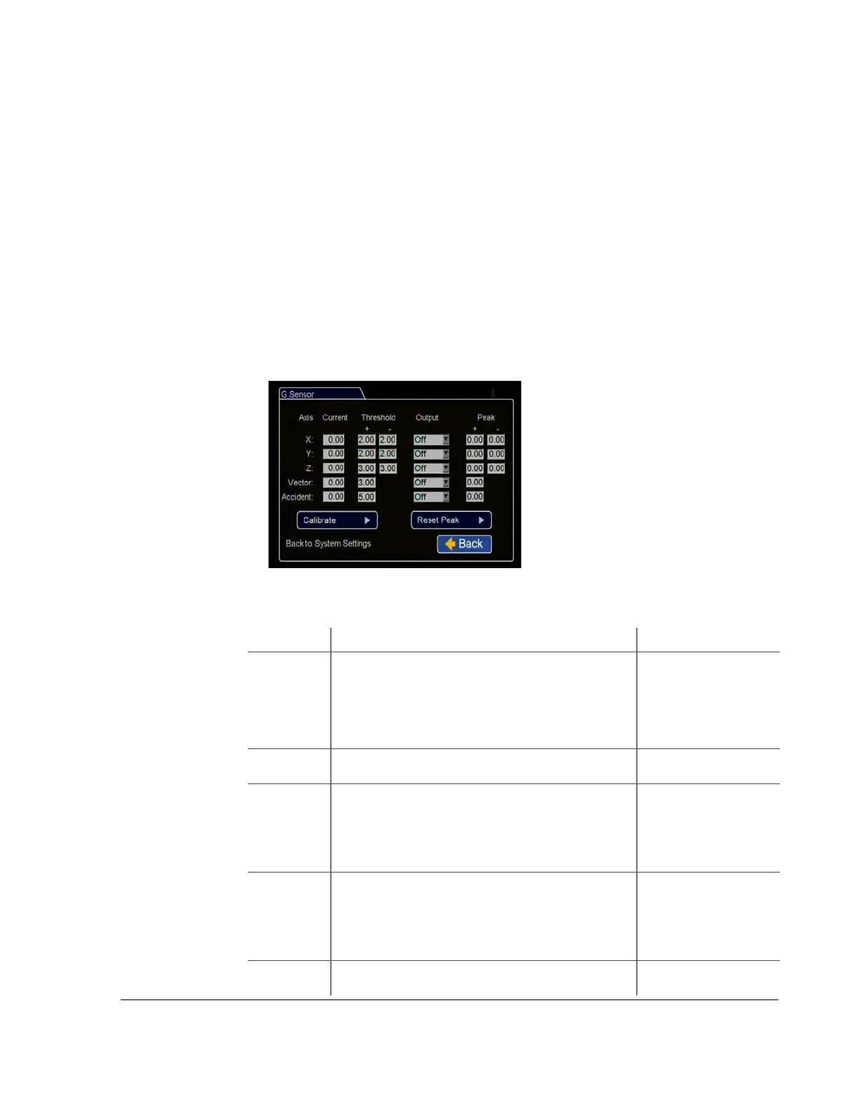 G Sensor Menu