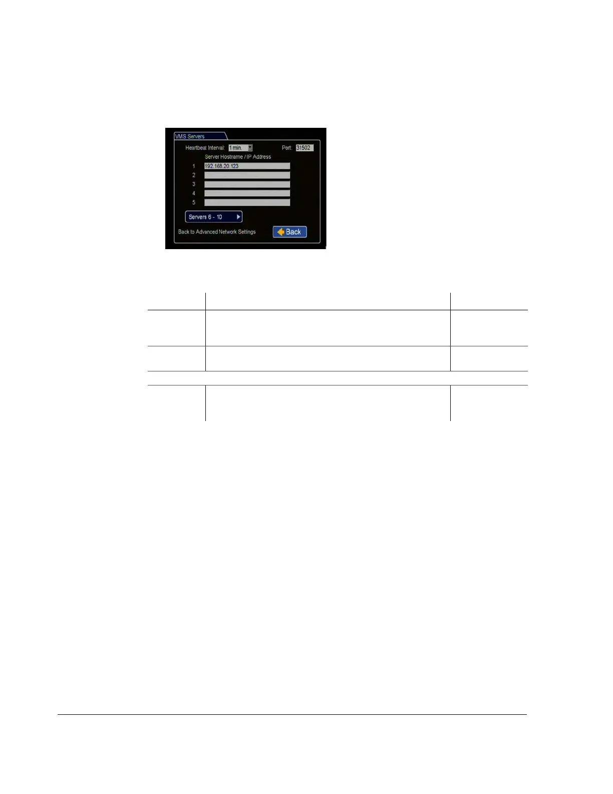 Up to 10 server hostnames or IP addresses that can receive VMS