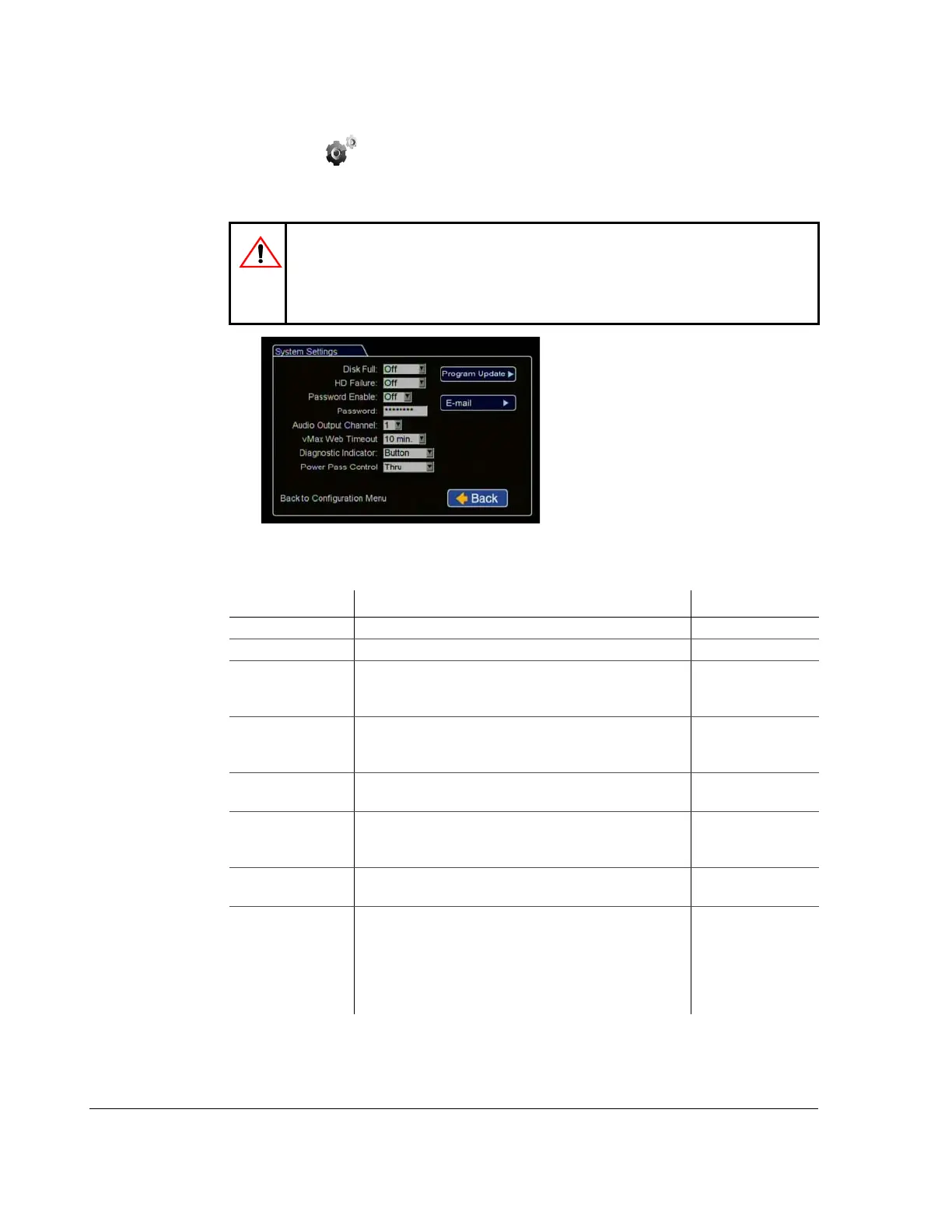 Password Enable If set to On, the STOP/TEMP PWR button on the DVR