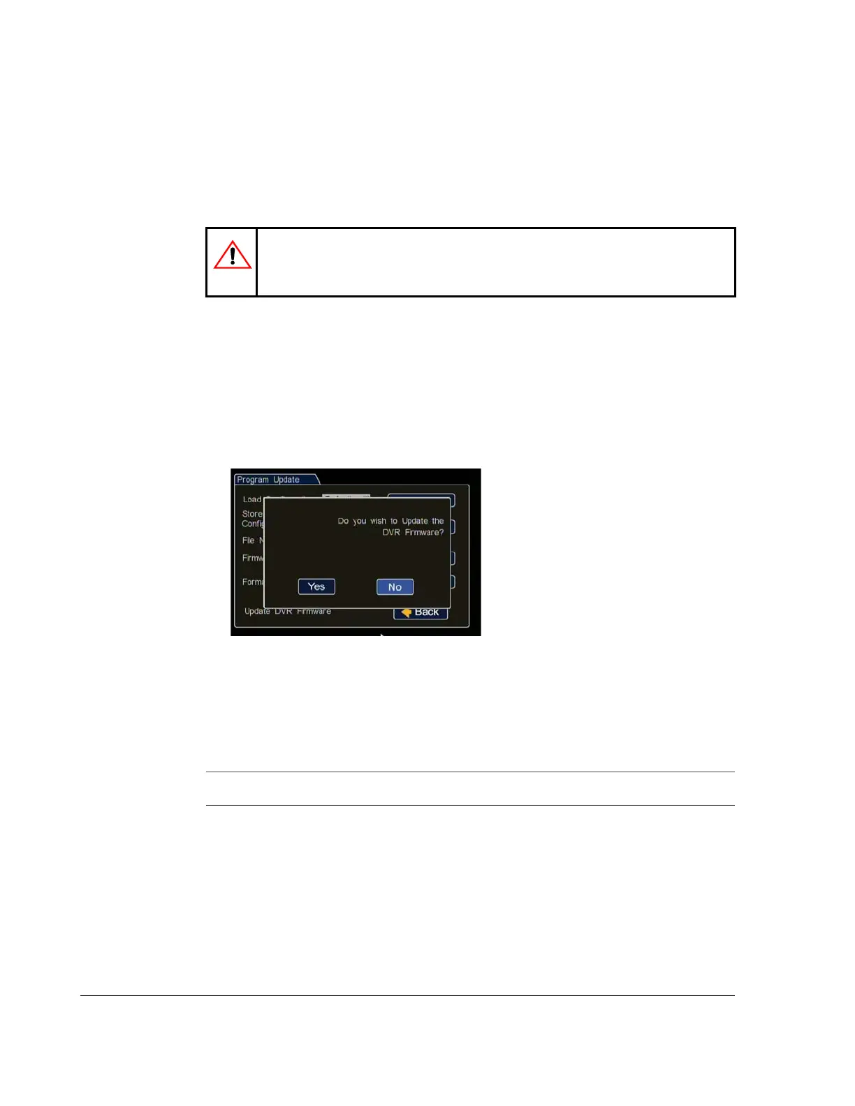 A window appears asking if you wish to update the DVR firmware.