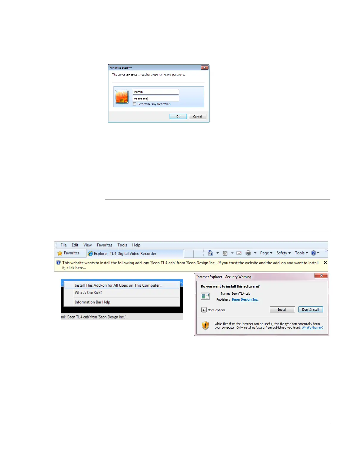 The first time a computer connects to this model of DVR, or when users are not