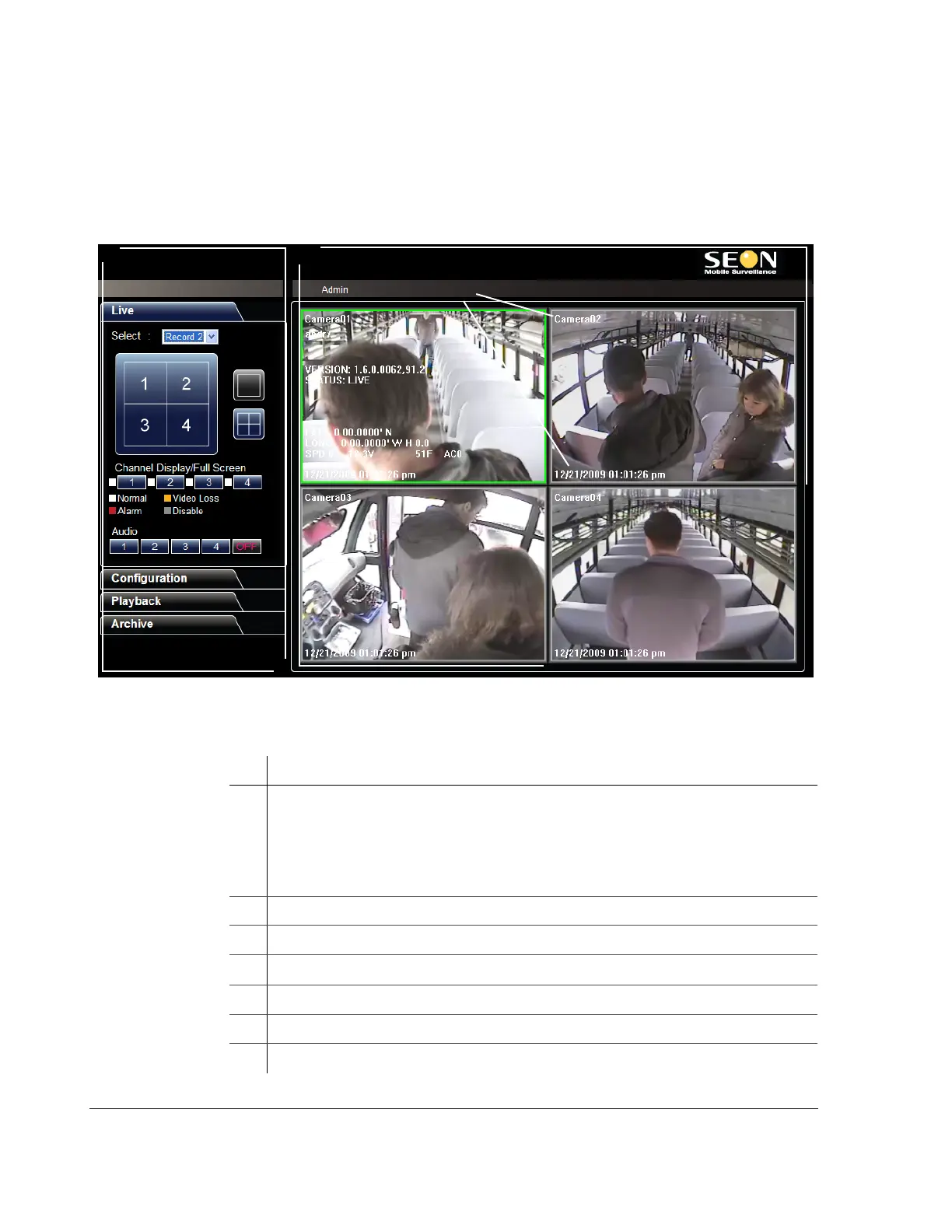• Live tab — live DVR video display and viewing controls