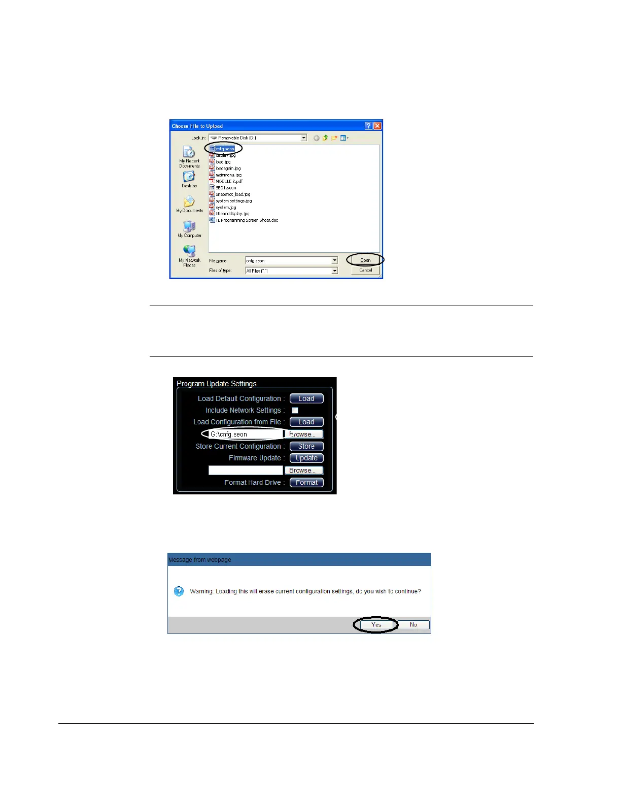 12. In the Message from web page dialog, click OK to start the configuration upload.