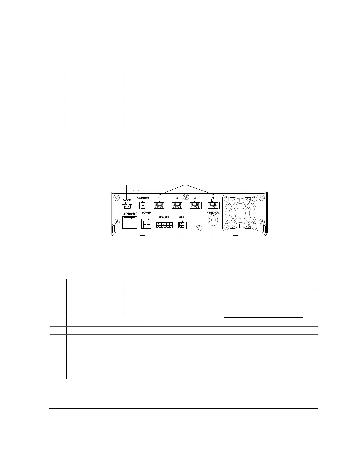 1 ALARM Alarm input connector for the alarm button.