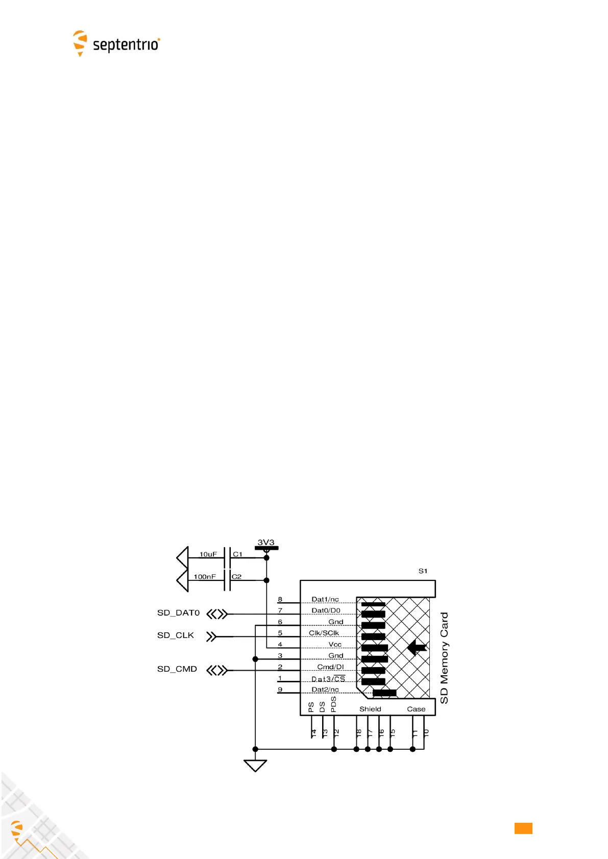 An example circuit to a 9-pin SD memory card socket is shown below. The maximum clock
