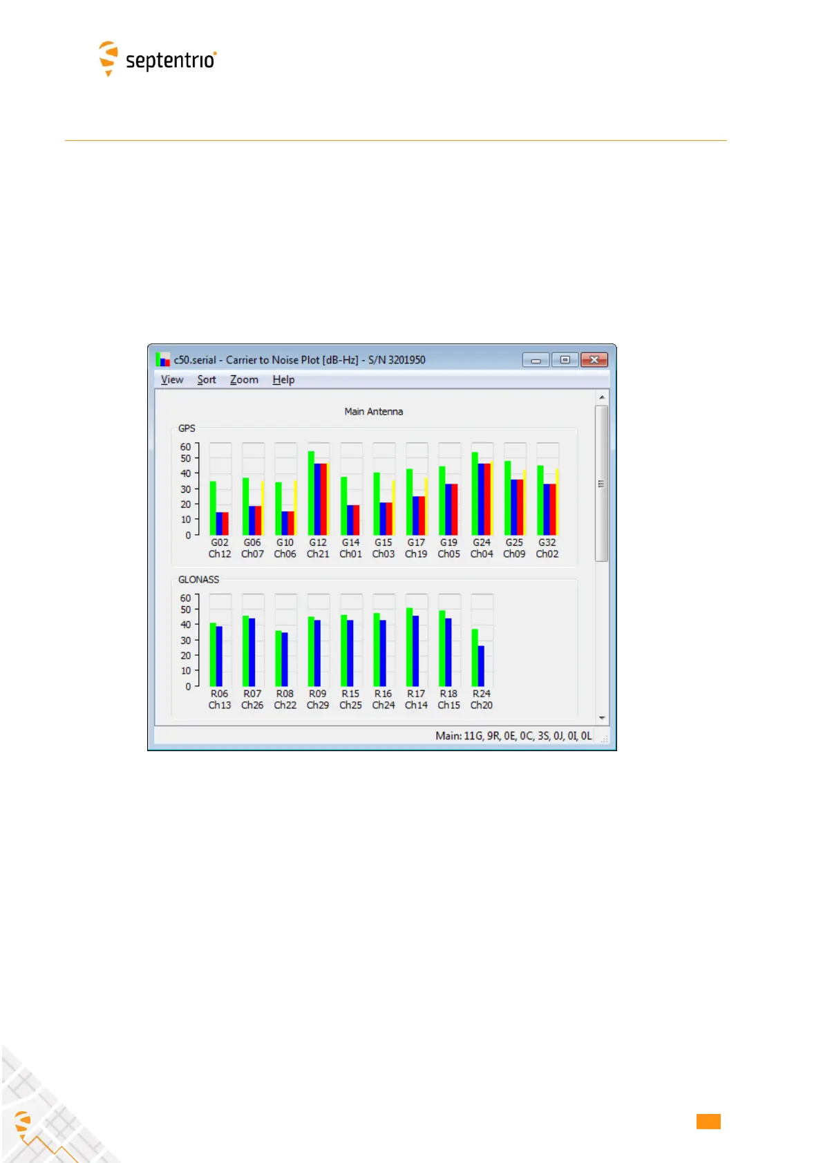 to Noise Plot. In open-sky conditions, the C/N0 values should reach up to 50 dB-Hz for the