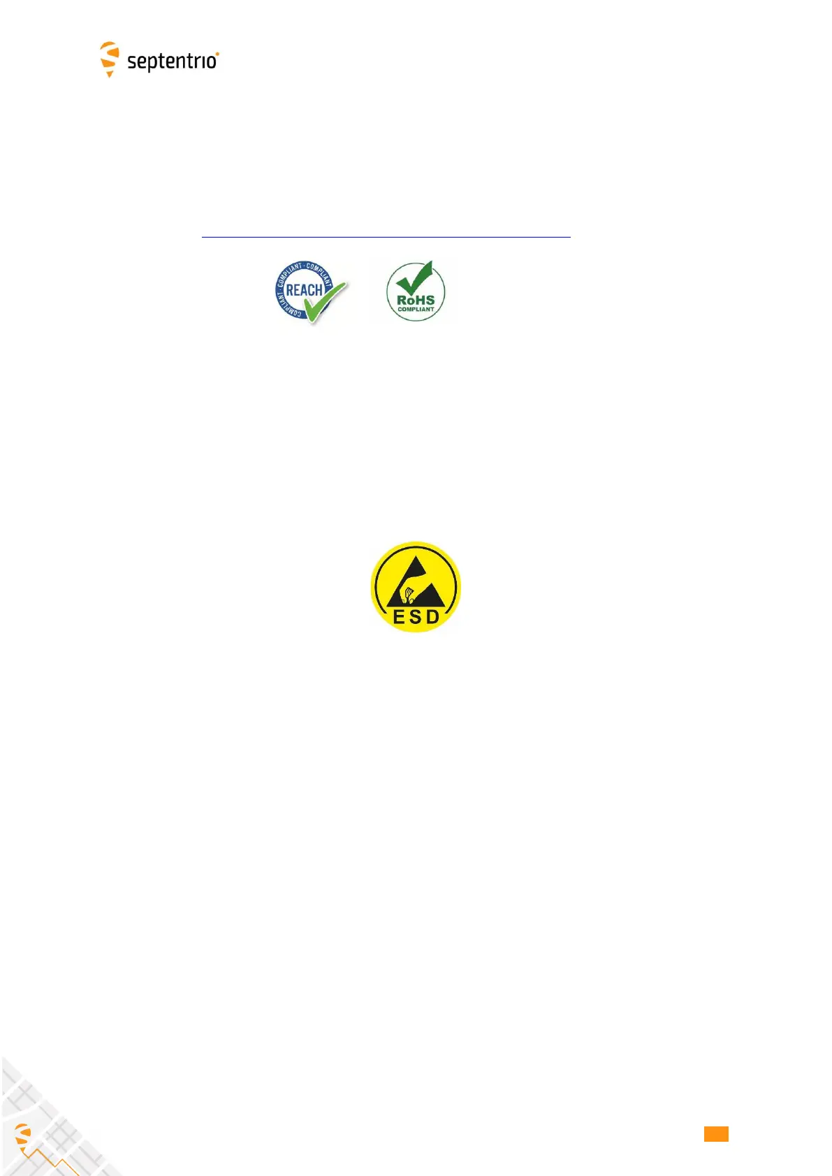 Septentrio receivers are compliant with the latest WEEE, RoHS and REACH directives. For