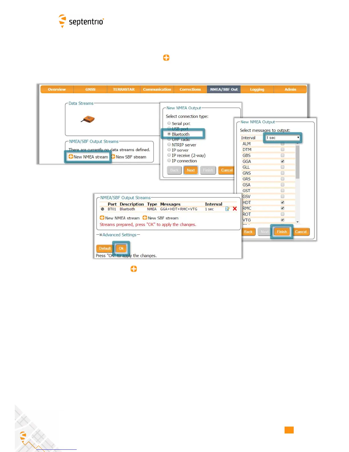 guide you through the various steps to configure NMEA output. Select Bluetooth as the