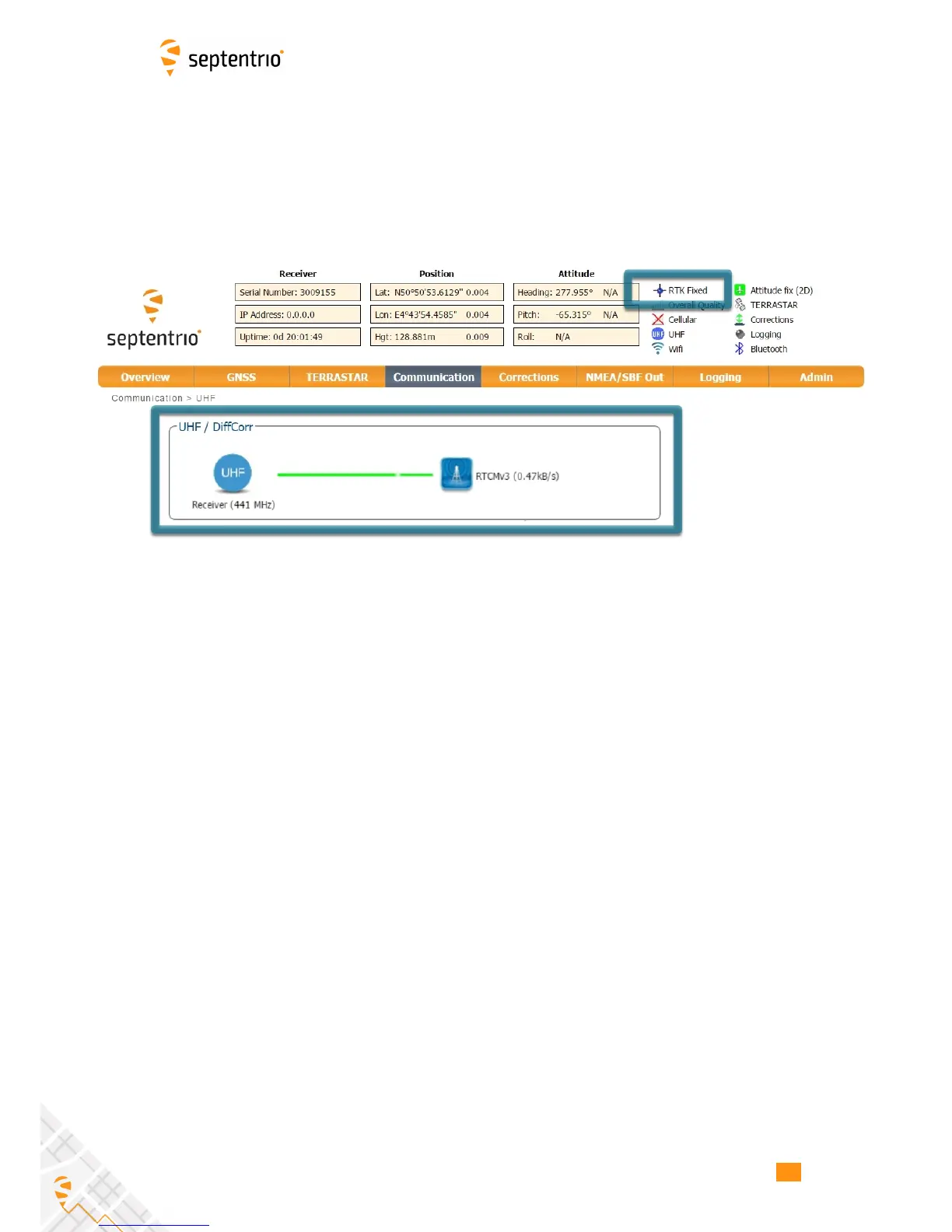 icon in the upper status field should also indicate ‘RTK Fixed’ after a few seconds.