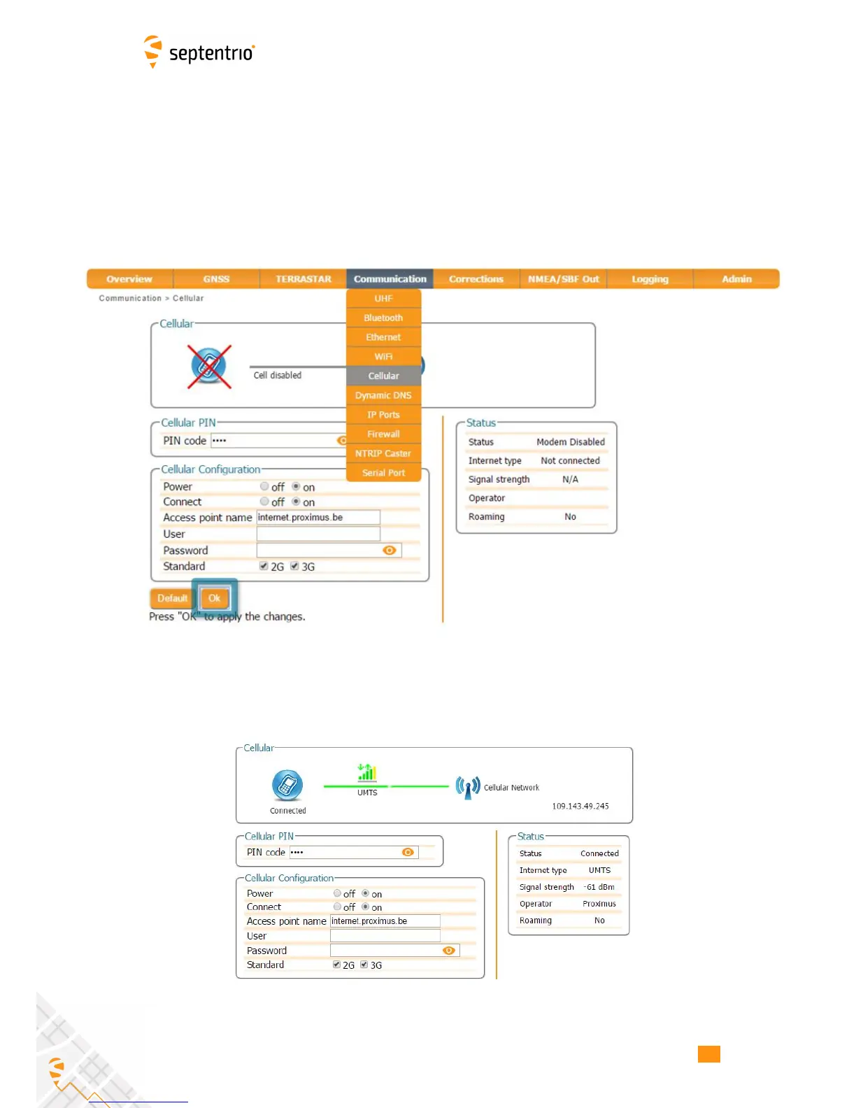 The on-board cellular modem of the AsteRx-U can be configured in the Communication,