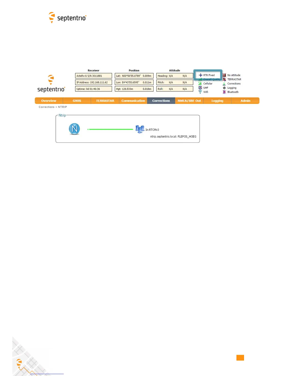 When both the cellular modem and NTRIP connection have been correctly configured, the