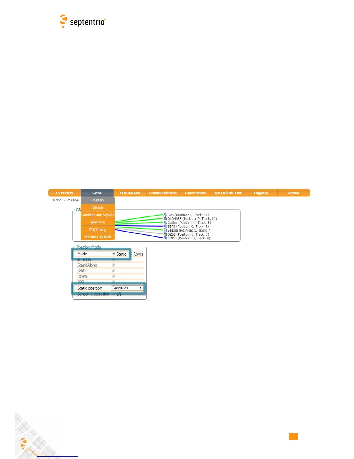 variation. The ‘Static’ position mode can be selected in the ‘Position’ window of the ‘GNSS’