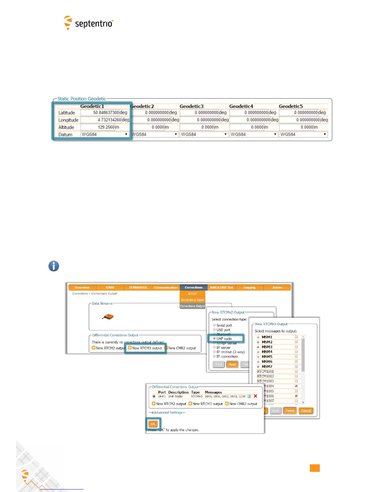 Figure 5-3 shows. Click on New RTCM3 output to start the sequence of configuration steps.
