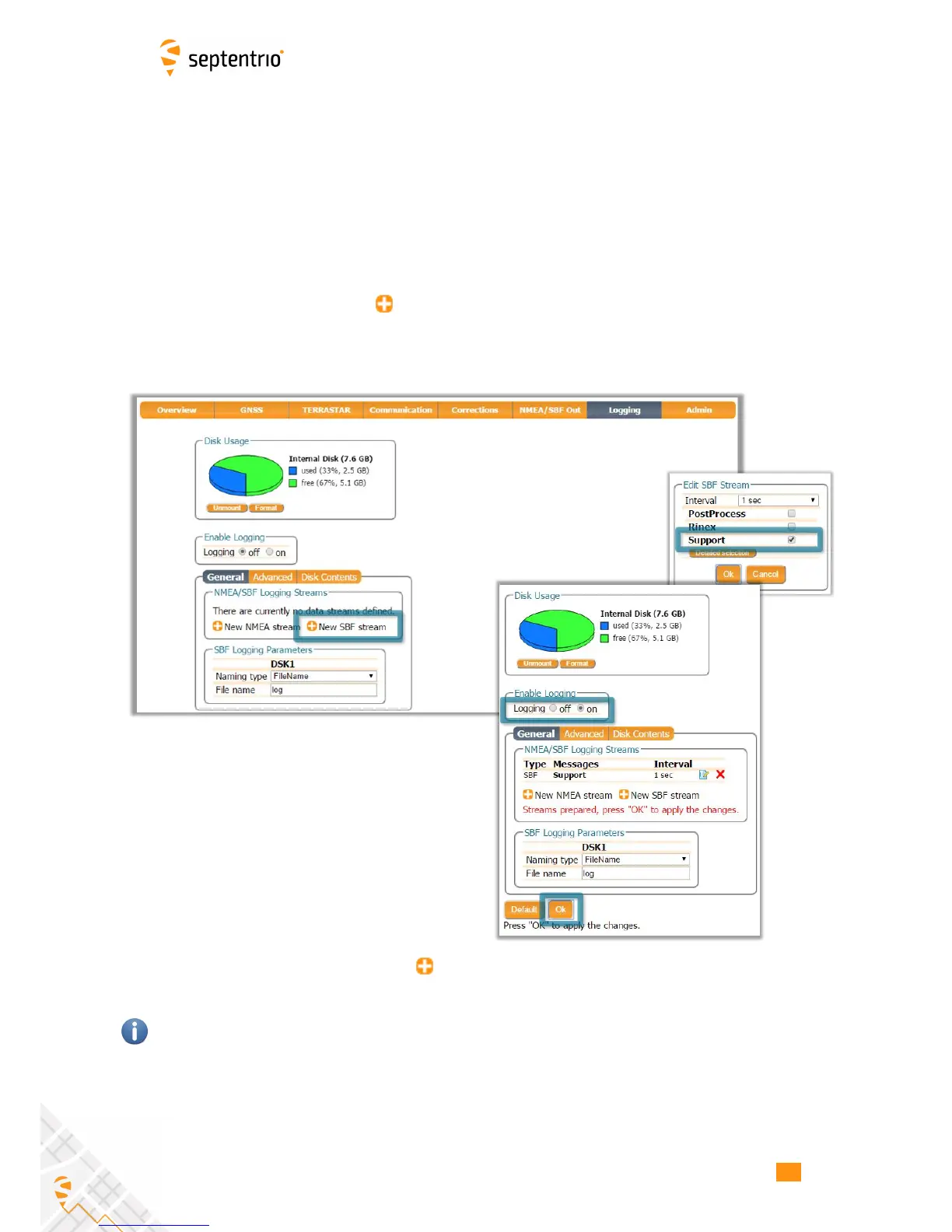 On the Logging page, click on New SBF stream. In the next window, you can select the